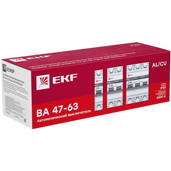 Автоматический выключатель Ekf 3п C 6А 4.5кА ВА 47-63 PROxima, mcb4763-3-06C-pro