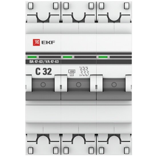 Автоматический выключатель 3P 32А (C) 4,5kA ВА 47-63 EKF PROxima mcb4763-3-32C-pro