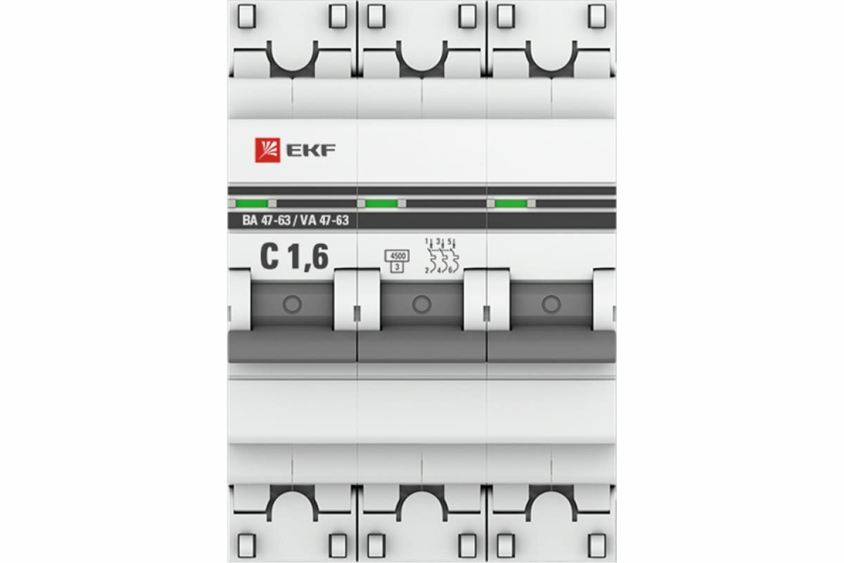 Купить Автоматический выключатель 3P 1,6А (C) 4,5kA ВА 47-63 EKF PROxima