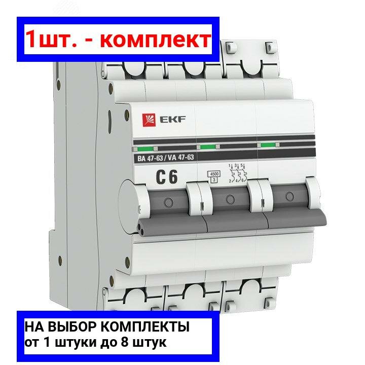 Купить Автоматический выключатель Ekf 3п C 6А 4.5кА ВА 47-63 PROxima, mcb4763-3-06C-pro