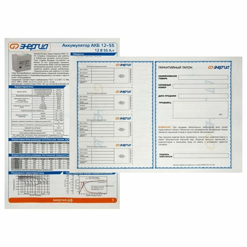 | Отзыв: | Получил батарею, отправленную продавцом без проверки. Техническая поддержка была предоставлена компанией "Энергия" и сервисным центром "Хикари". Дополнительных расходов не было. Емкость батареи соответствует. Самостоятельную проверку емкости батареи после покупки рекомендую проверять через КТЦ по разрядной таблице из паспорта. |