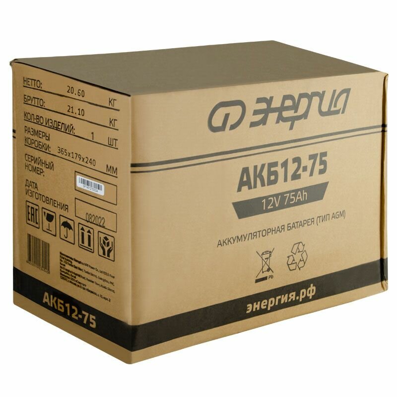 Энергия АКБ 12-75, Е0201-0021