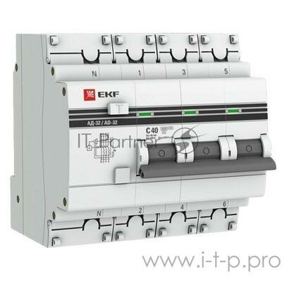 DA32-40-30-4P-pro Дифференциальный автоматический выключатель EKF АД-32 PROxima 3П+N 40А 30мА, тип AC, 4.5кА, C