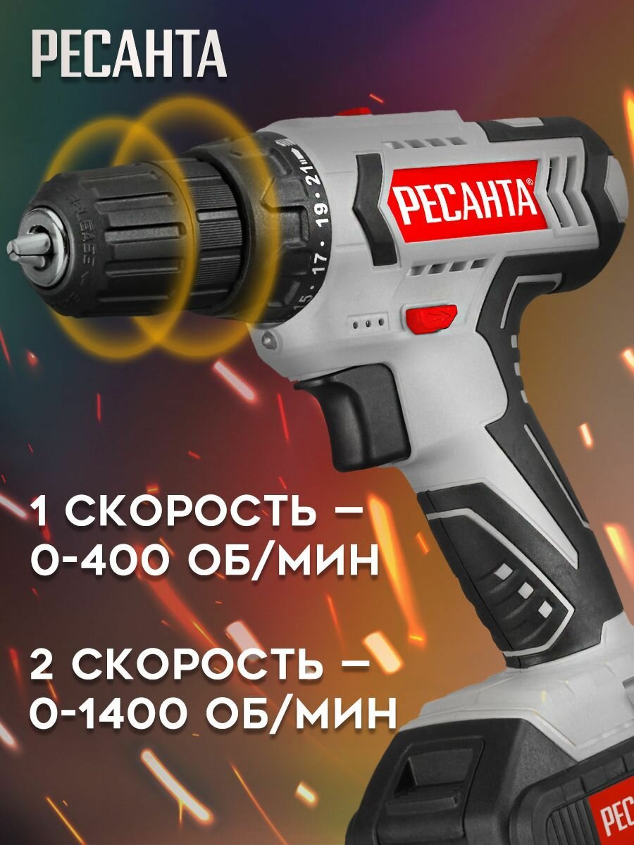 Аккумуляторная дрель-шуруповерт Ресанта ДА-14-2Л 75/14/3 Ресанта