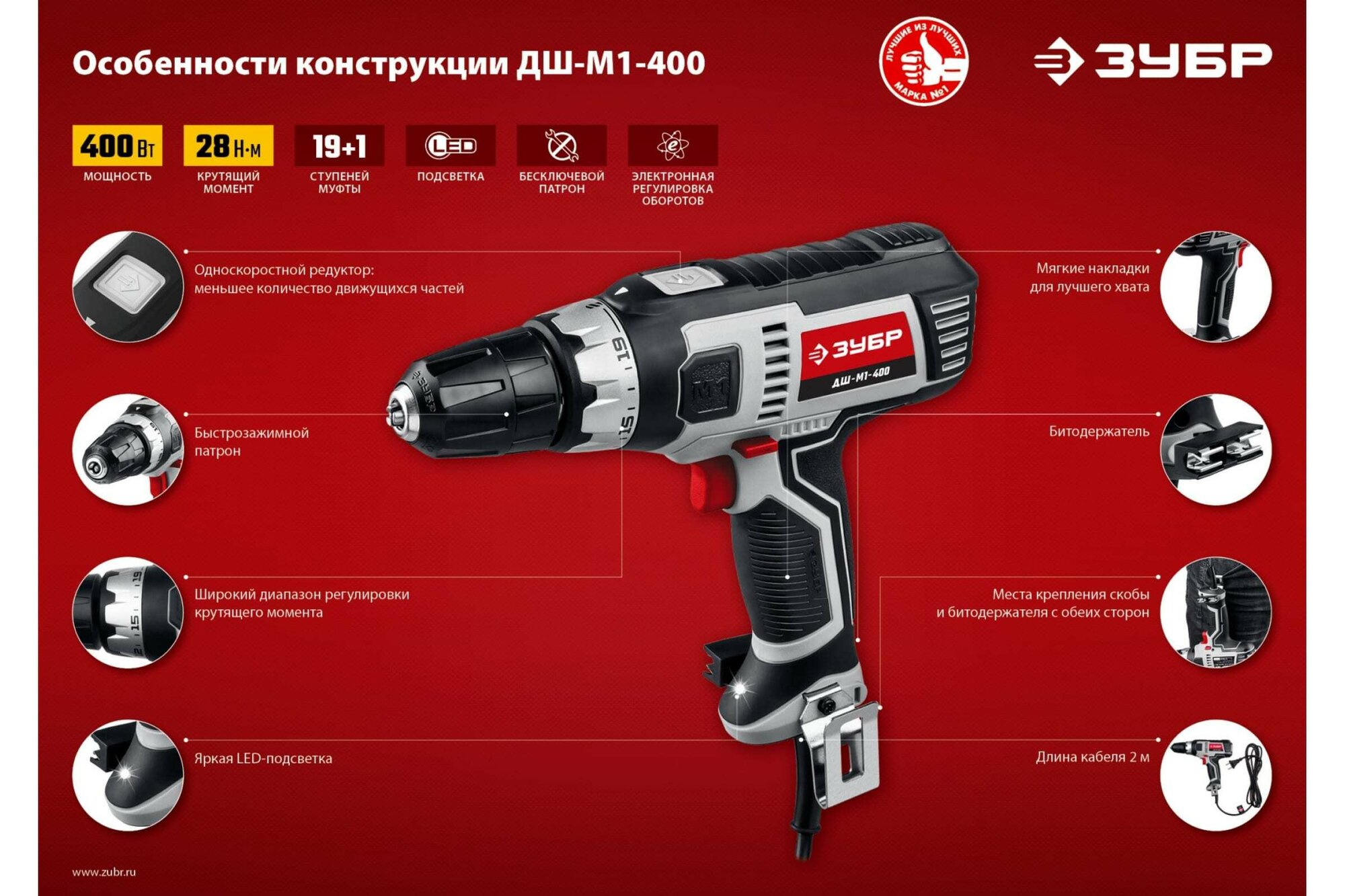 Дрель-шуруповерт ЗУБР ДШ-М1-400 интересное: