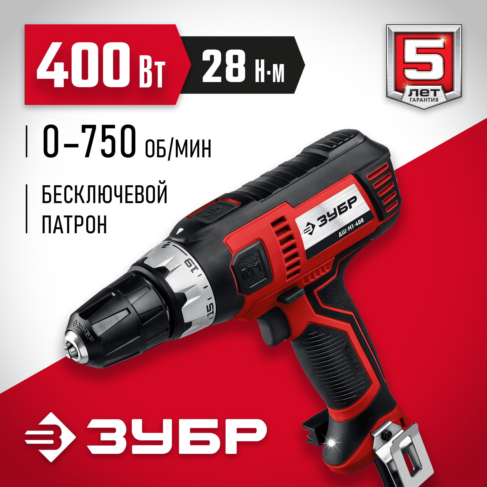 Дрель-шуруповерт сетевая ЗУБР ДШ-М1-400, серия «мастер»