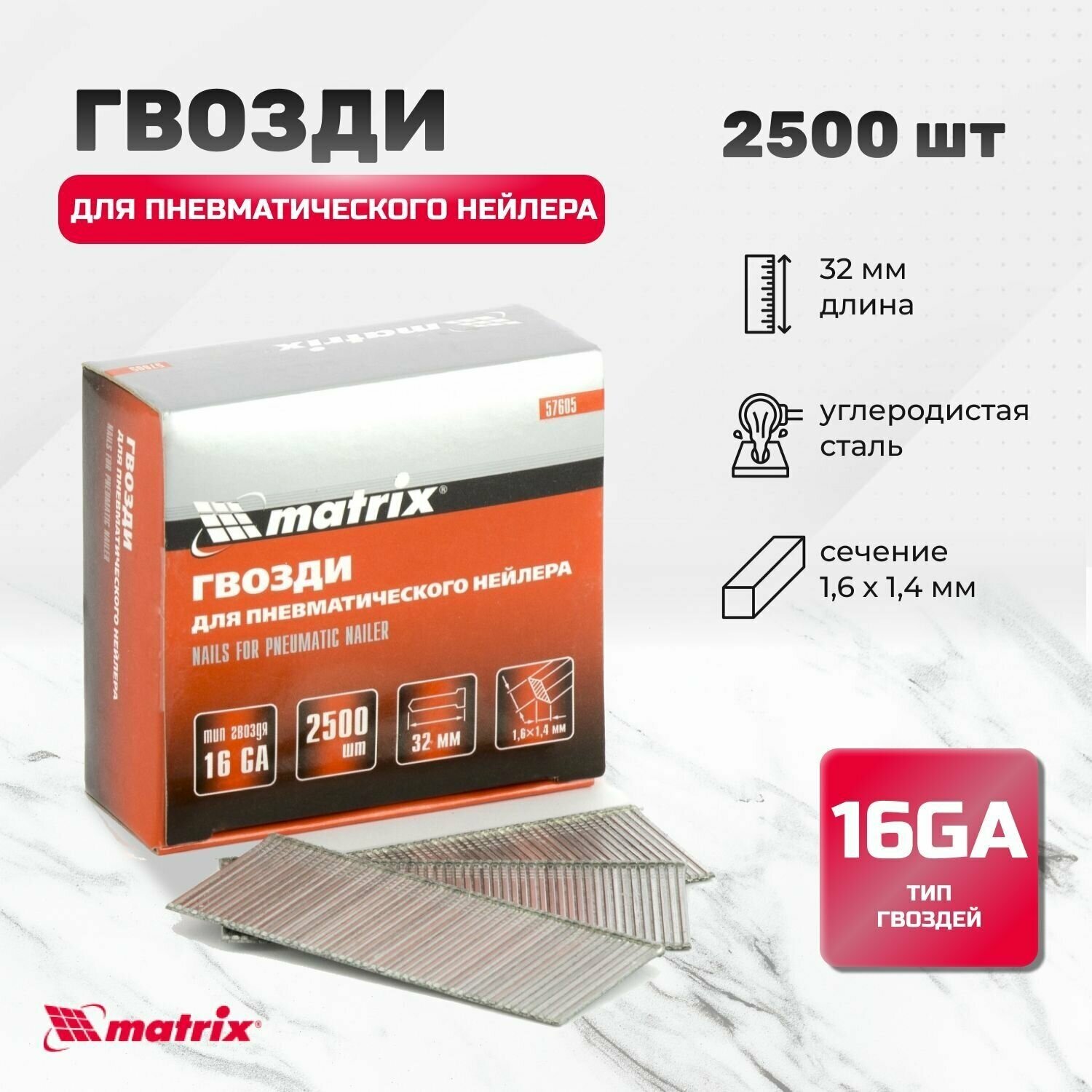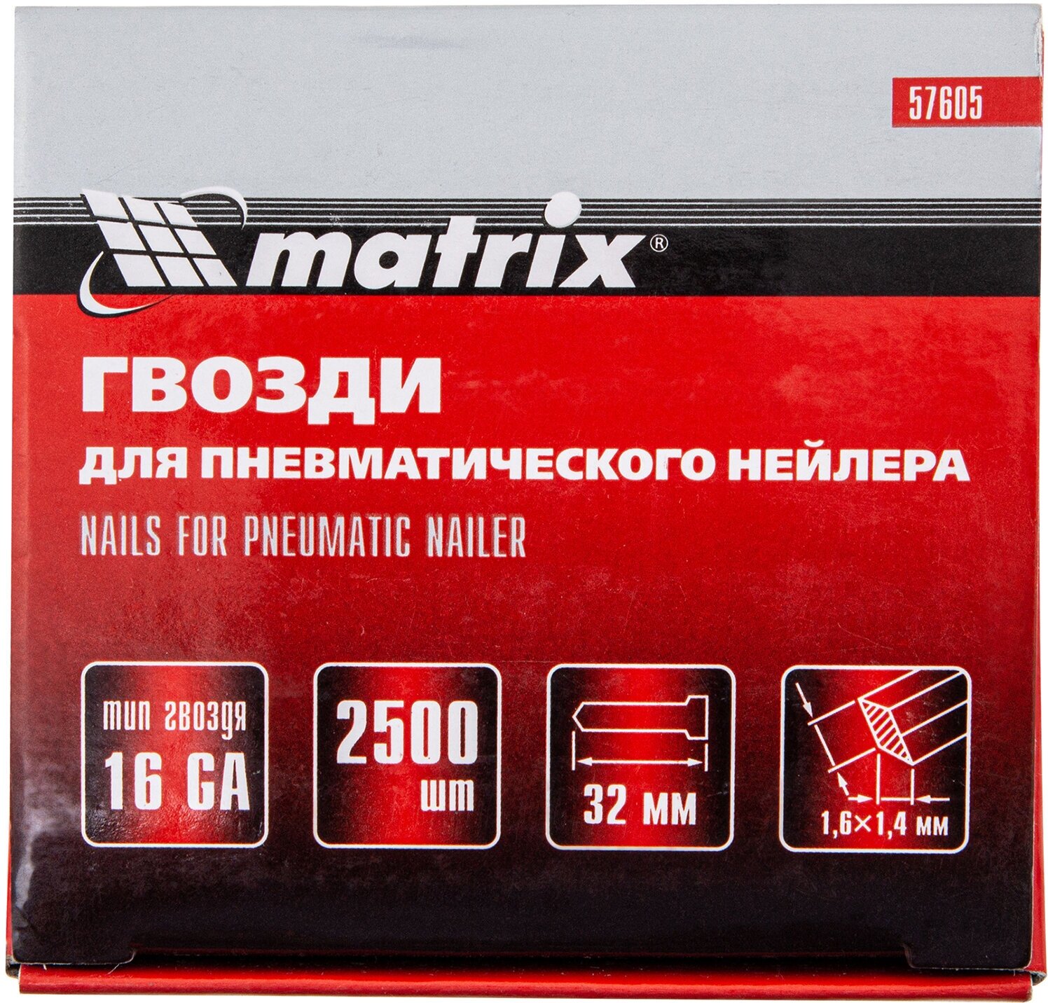 Гвозди для пневматического нейлера 16GA, сечение 1.6 х 1.4, длина 32 мм, 2500 шт Matrix 57605 интересное: