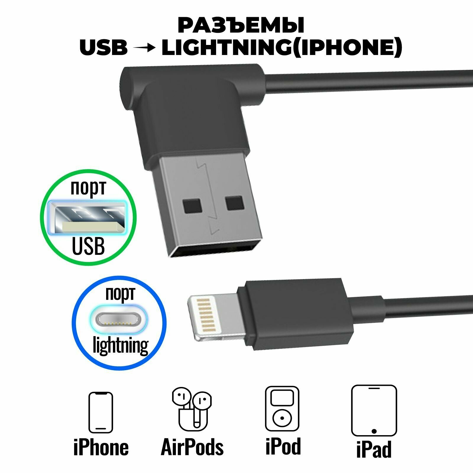 | Разъемы кабеля | USB 2.0 (am) - Lightning (m) |