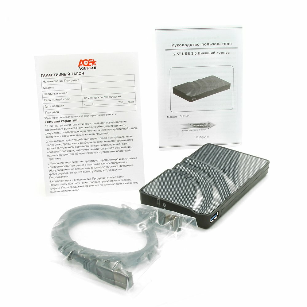 AgeStar 3UB2P USB 3.0 Внешний корпус 2.5" SATA HDD SSD AgeStar 3UB2P USB3.0 алюминий черный серебр