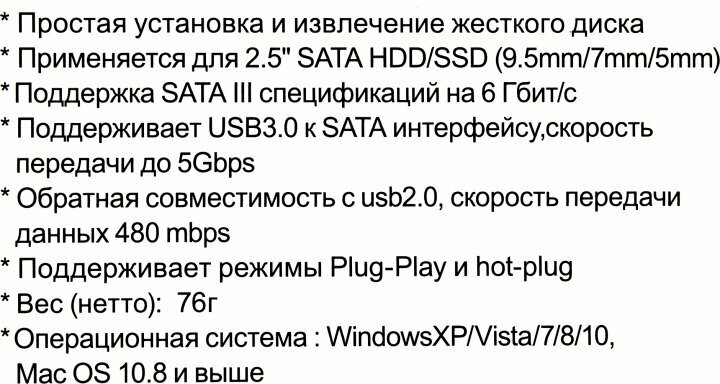 | Отзыв: | Вероятно неисправна плата адаптера. Столкнулся с проблемой, при первом подключении все было ок. Последующие подключения заводят ПК в ступор. Проводник не отвечает. Замена диска и кабеля не решила вопрос. Пользоваться не возможно. |