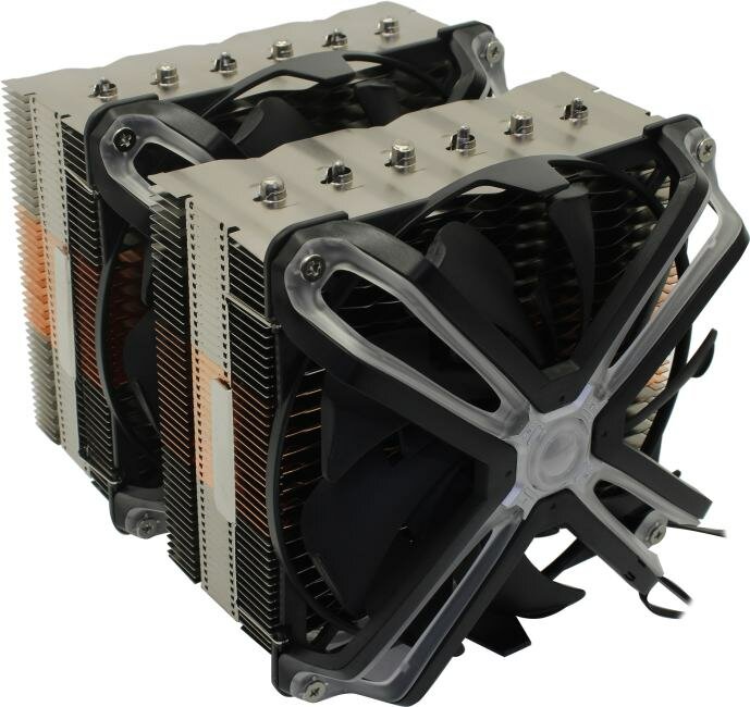 | Плюсы: | Мощность охлаждения. Весьма приемлемый уровень шума. Подсветка может работать с подсветкой MB +/- синхронно |