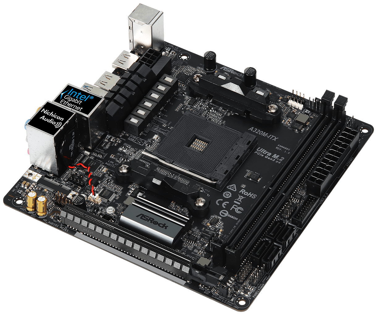 Материнская плата ASRock A320M-ITX Socket AM4 AMD A320 2xDDR4 1xPCI-E 16x 4xSATA III mini-ITX Retail