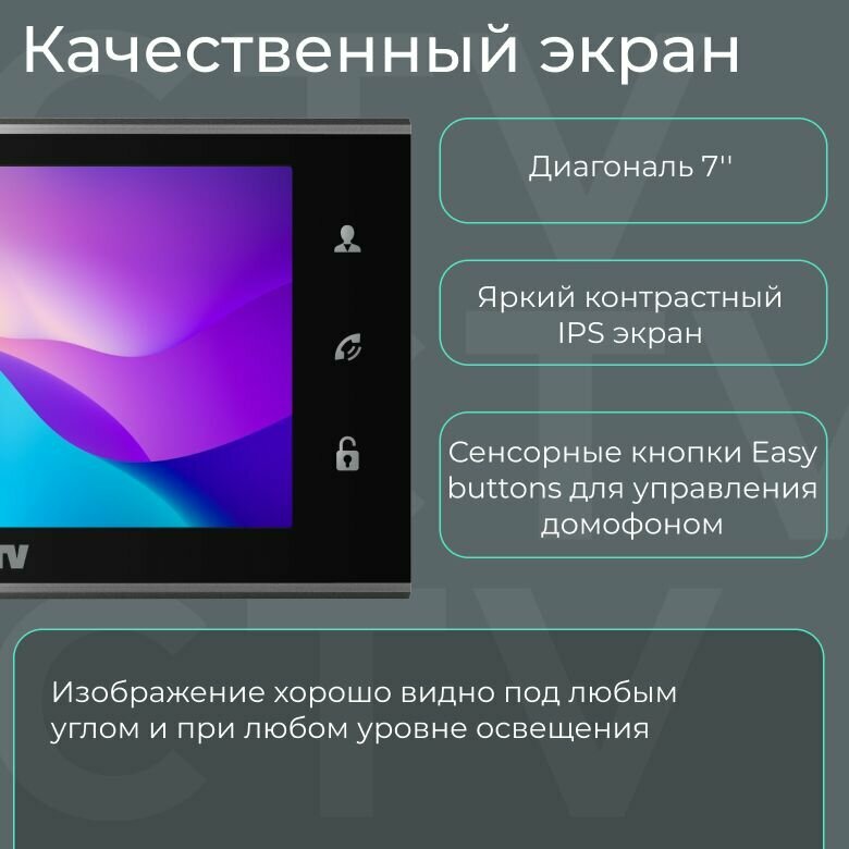 CTV-M2702MD (Черный) Видеодомофон для квартиры, IPS экран 7" (1024x600), с записью видео по детекции движения, автоответчик, HOOK