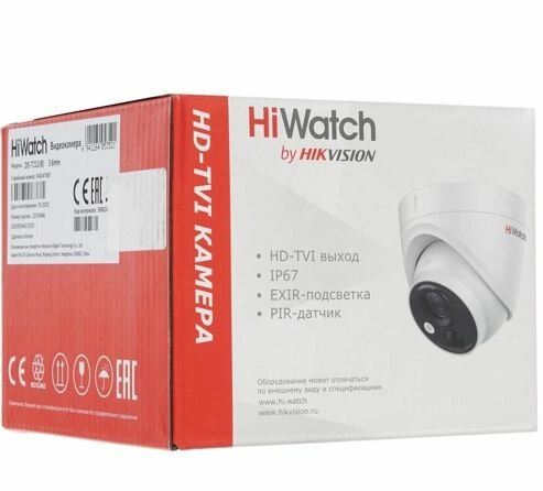 Видеокамера HiWatch 2Мп уличная купольная HD-TVI камера с EXIR-подсветкой до 20м и PIR 1/27" CMOS матрица