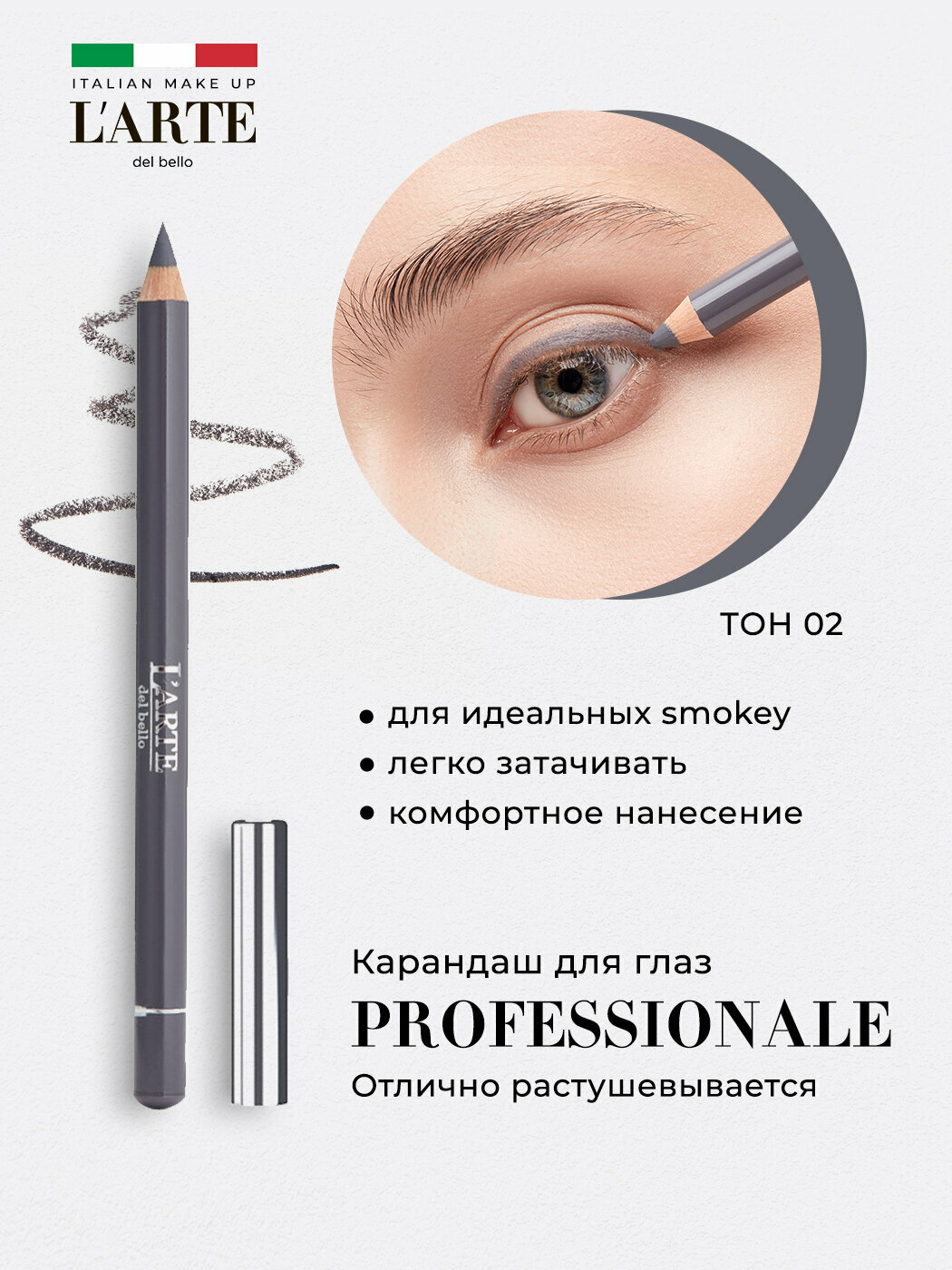 L'arte del bello, Карандаш для глаз PROFESSIONALE, тон 02