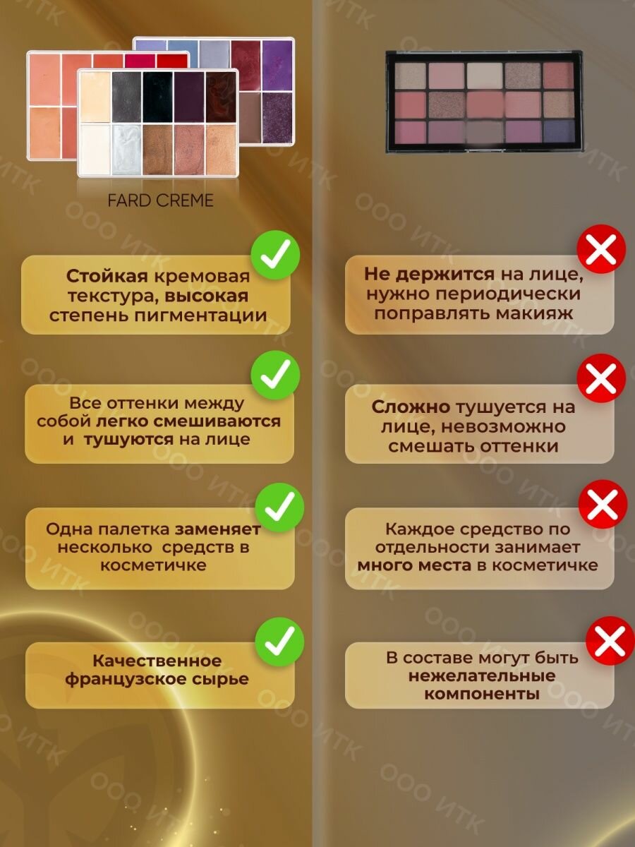 Палетка Fard Creme FOUNDATION корректор румяна помады тени