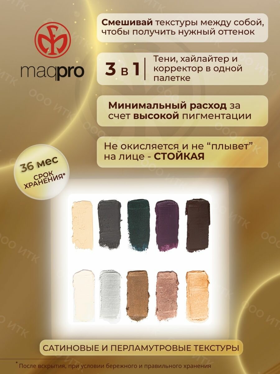 СохранитьПалетка теней кремовой текстуры 10 цветов SMOKY, MaqPro интересное: