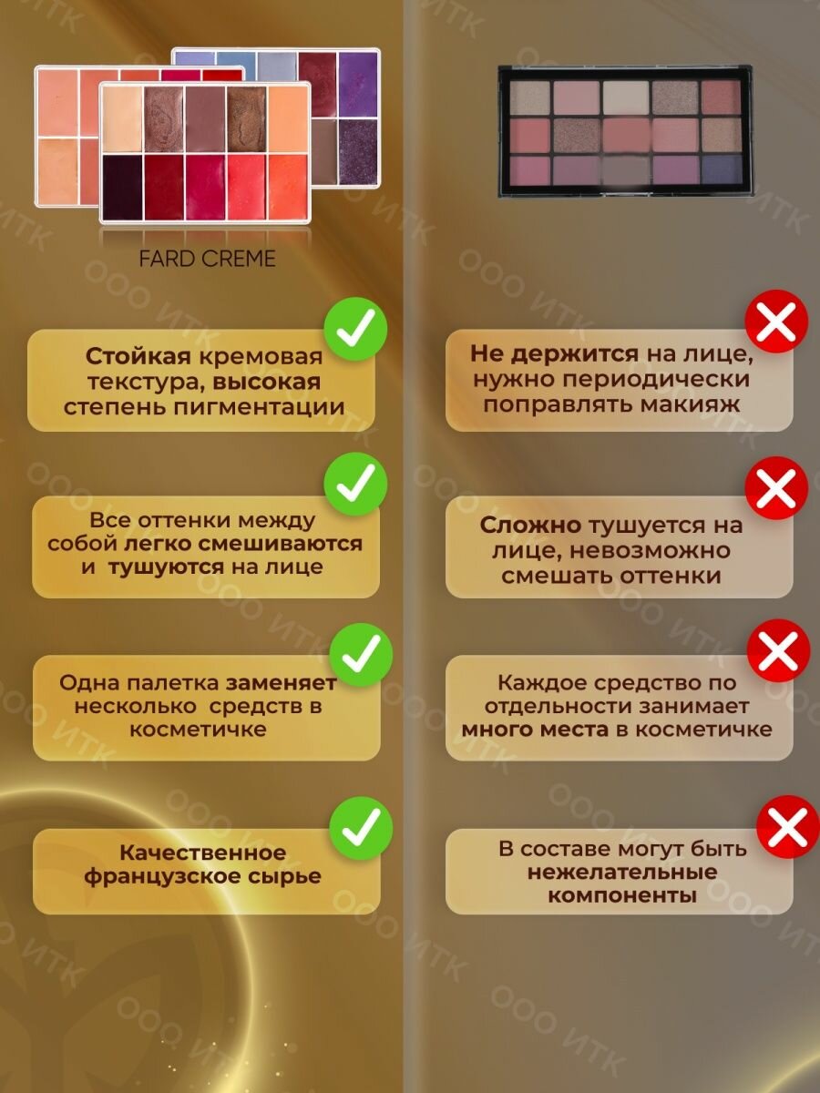 Палетка Fard Creme FOUNDATION корректор румяна помады тени