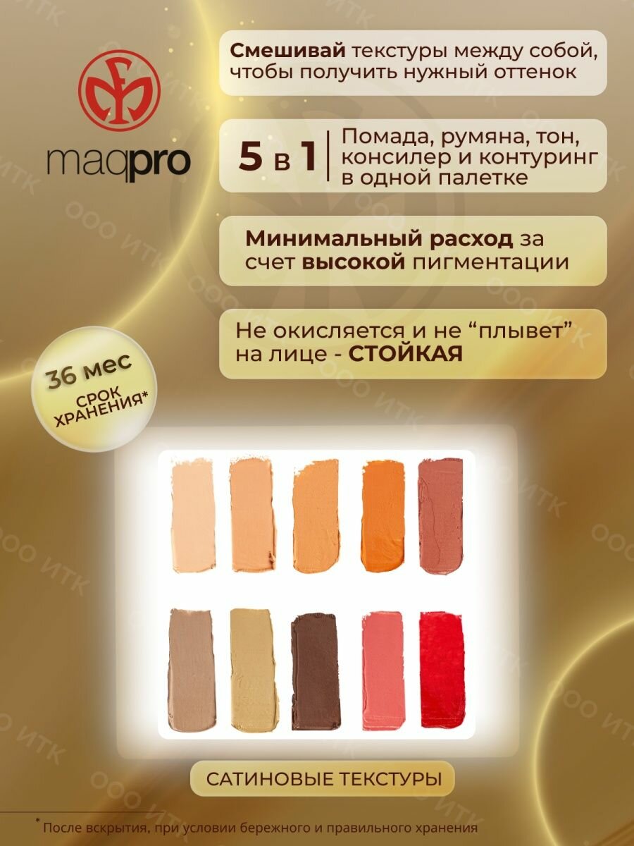 Тени кремовые в палитре 10 цветов АК106, MaqPro