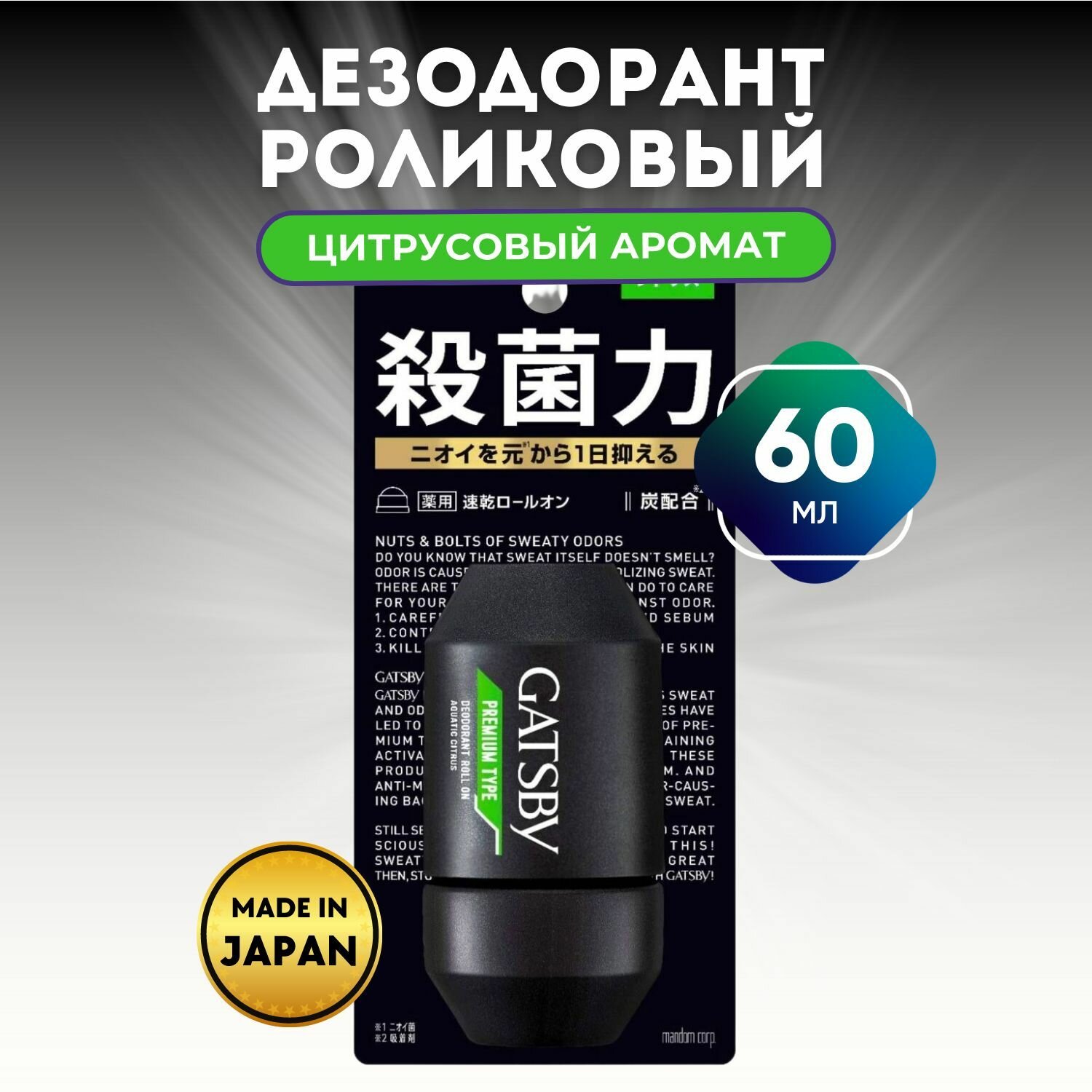 Mandom Премиальный роликовый дезодорант-антиперспирант "Gatsby Premium Type" с антибактериальным эффектом (с ароматом акватических цитрусов) 60 мл