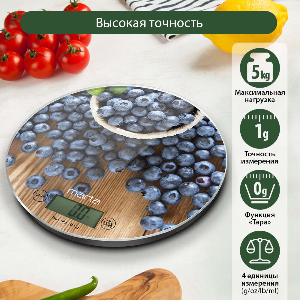 Кухонные весы MARTA MT-1640, черничная россыпь