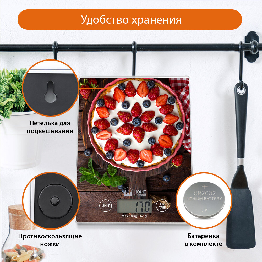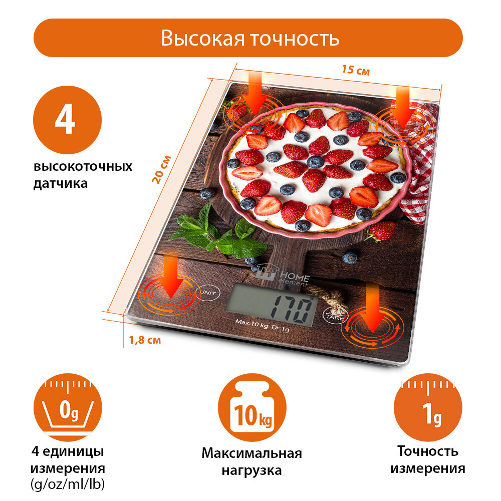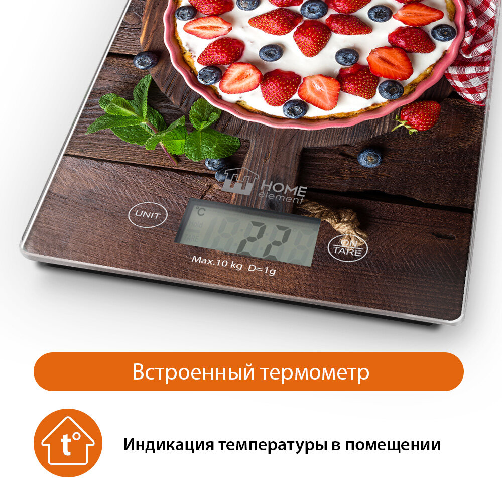 Купить Весы кухонные HOME ELEMENT HE-SC935 ягодный пирог сенсор, встроенный термометр
