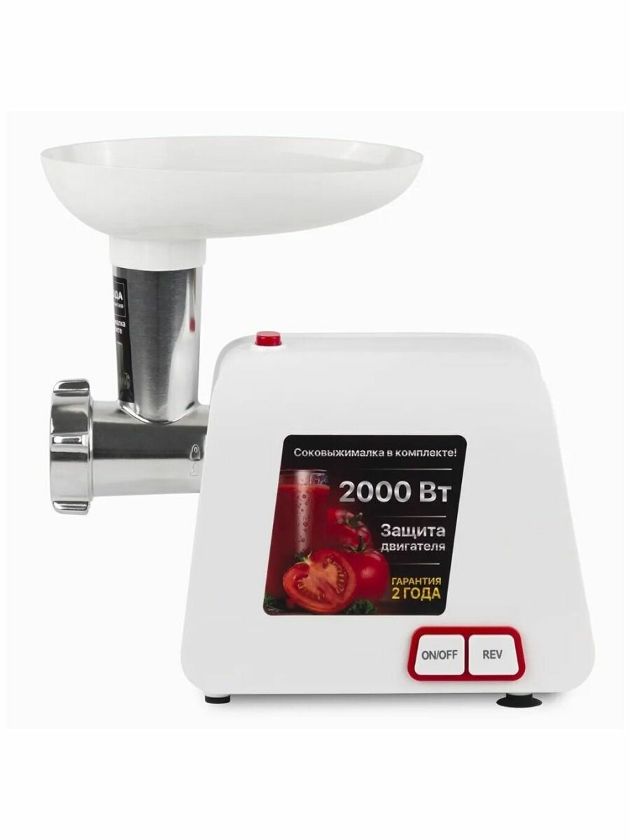 Мясорубка электрическая Willmark Wmg-2043jw (2000Вт, томат. соковыжималка, реверс, 2 реш., бел. 2г.