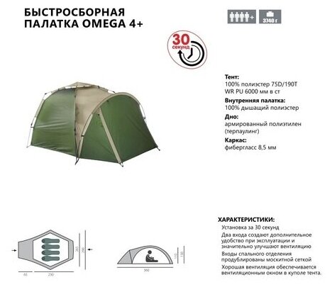 Палатка BTrace Omega 4+ быстросборная интересное: