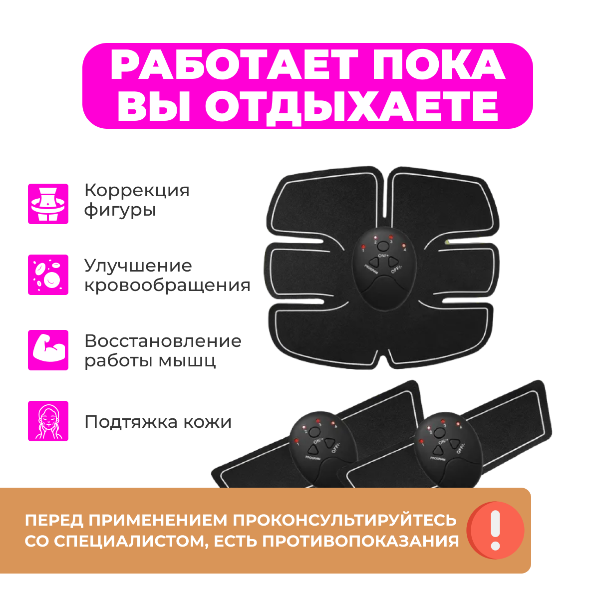 | Минусы: | Не прилипает к телу нету результата никакого |