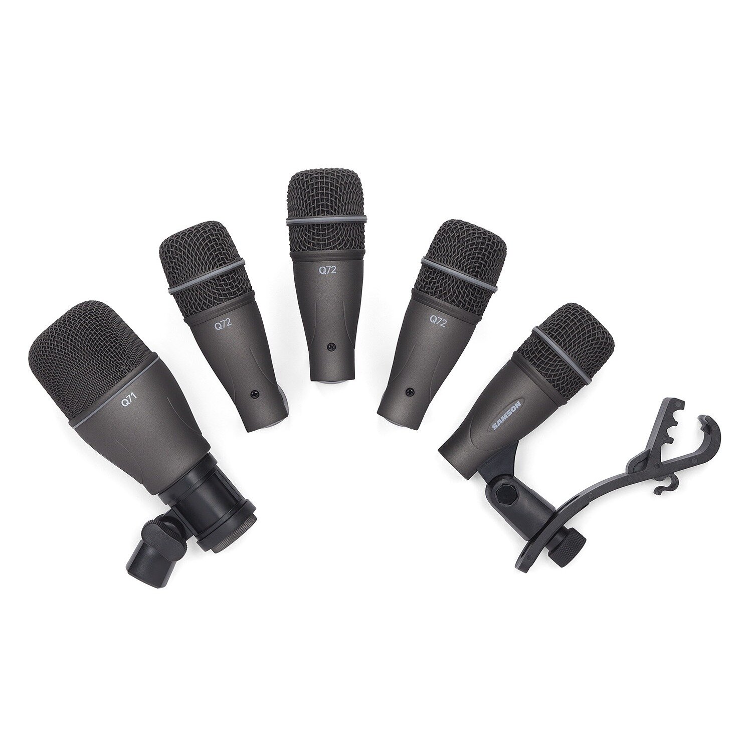 DK705 - комплект микрофонов для барабанов, (Q71 Kick Drum Mic-1 шт, Q72 Tom/Snare-4 шт. держатели для обода в наборе) в пластиковом кейсе. Бренд SAMSON