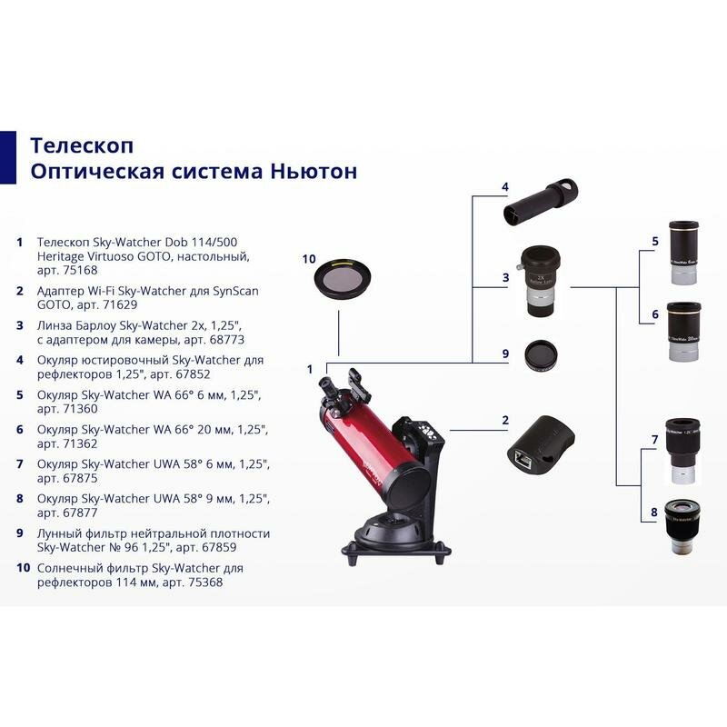 Телескоп Sky-Watcher Dob 114/500 Heritage Virtuoso GOTO, настольный интересное: