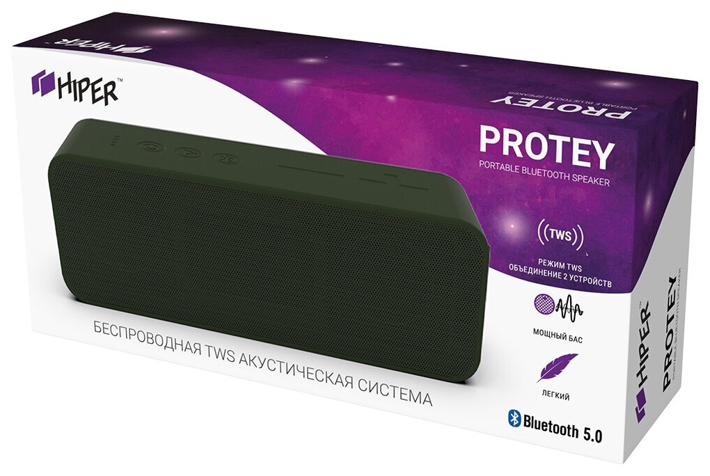 Активная акустическая система HIPER PROTEY Military, H-TS3, 10 ВТ,130 Гц - 18 кГц,2200 мАч, BT 5,0,Hands-free,Type C