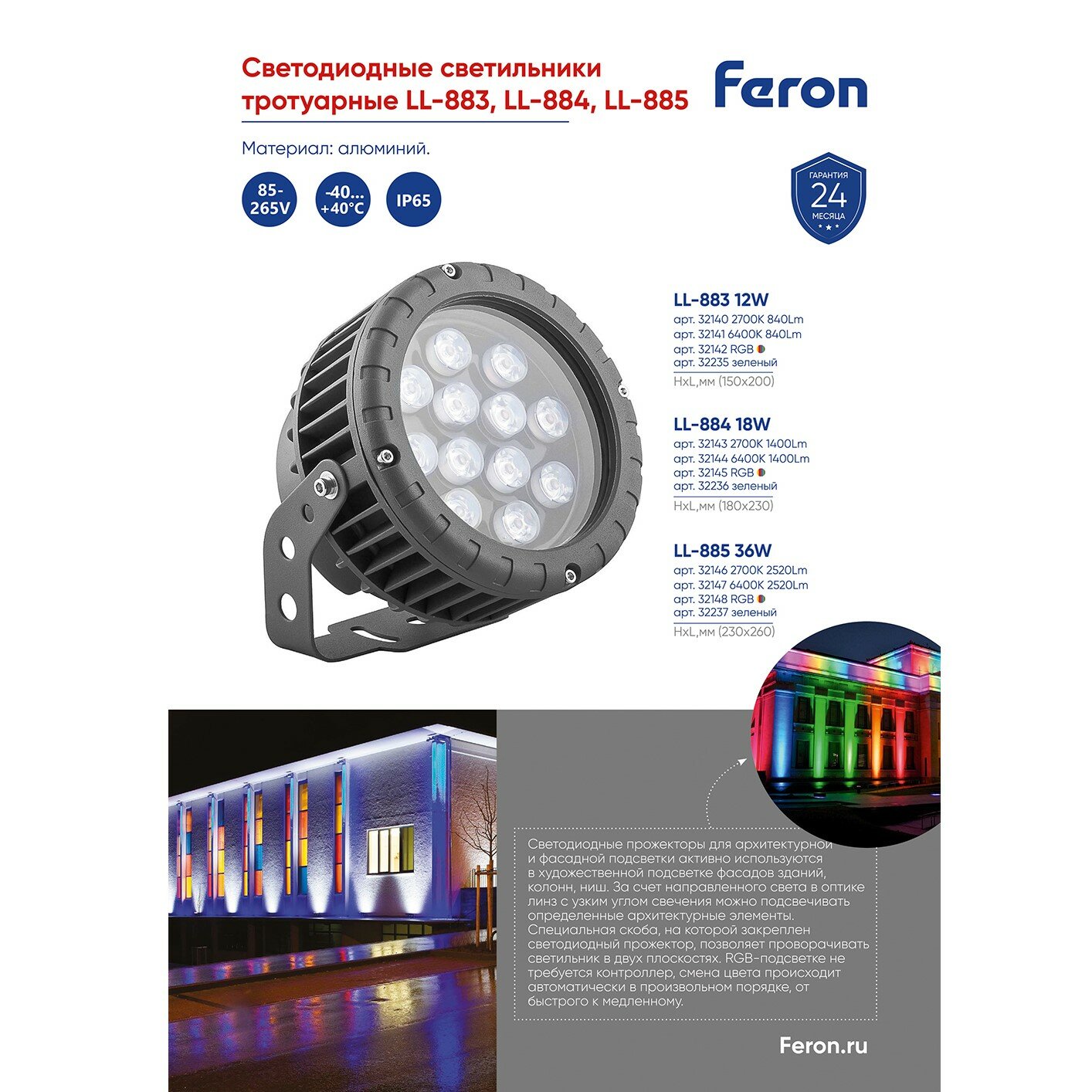 Feron LL-883 Прожектор ландшафтно-архитектурный светодиодный, на кронштейн (до) , 12W, 32235
