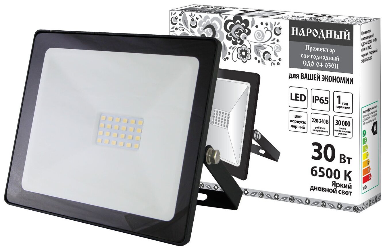 Прожектор Светодиодный Сдо-04-030н 30ВТ 6500 К IP65 Черный Народный ТDM SQ0336-0262 .