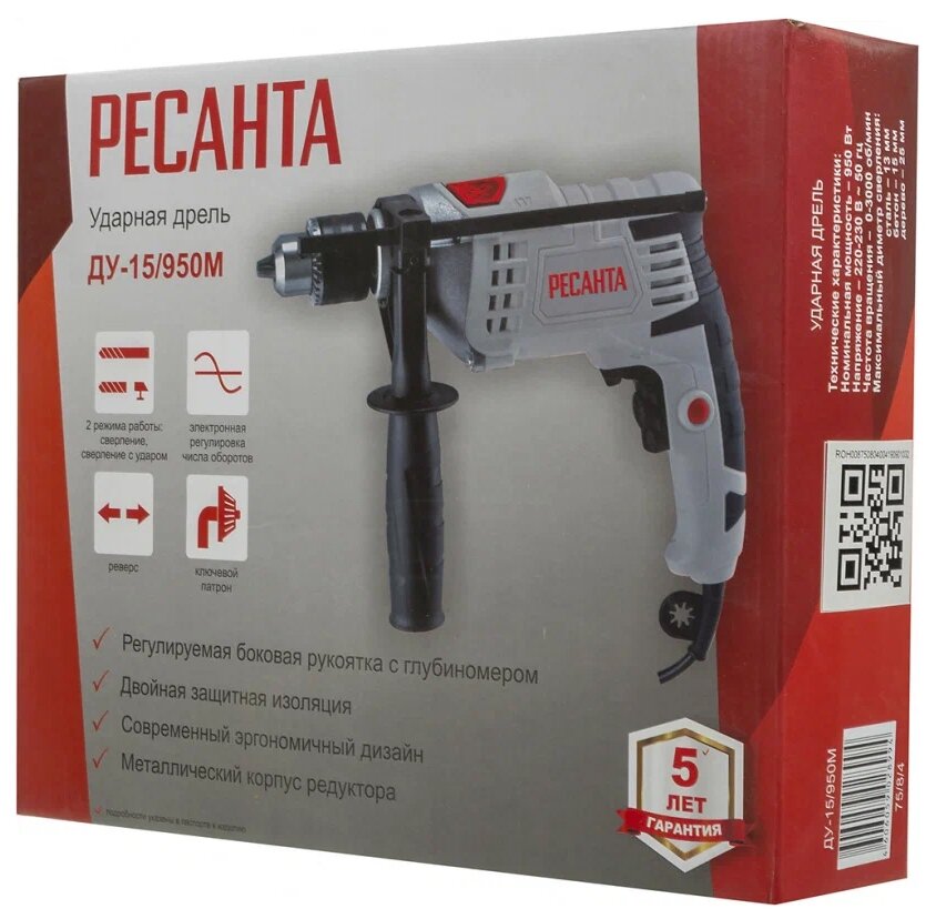 Дрель ударная ДУ-15/950М Ресанта 75/8/4