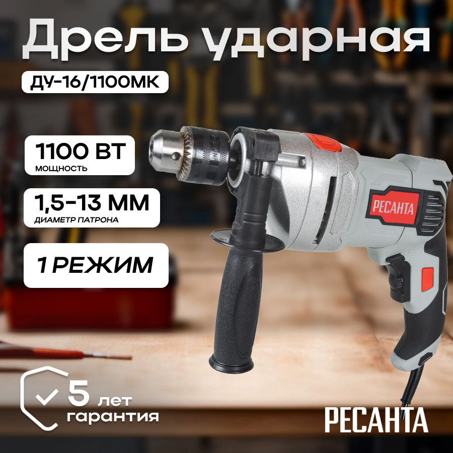 Дрель ударная Ресанта ДУ-16/1100МК, 1100 Вт