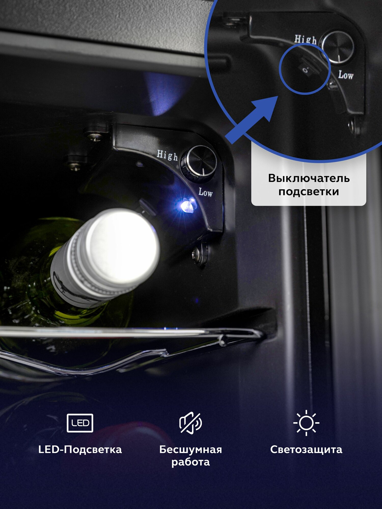 | Отзыв: | Для общего понимания: охлаждает он продукцию как того требуется, но имейте ввиду - это не морозилка, а все же шкаф для вина. Т.е. если вам нужно правильно охлажденное вино/игристое - положите его в шкаф заранее - в идеале за сутки(при этом сама бутылка успеет охладиться как надо и результат будет какой нужно). Не подходит для моментального охлаждения продукта. Не заметил чтобы внутренняя температура сильно падала при открытии дверцы - логика использования не подразумевает моментальное превращение продукта в алкогольный лед. Бутылки с игристым затолкать можно, но входят тяжело, и выходят по сути также - если хранить в нем игристое, доставая его одной рукой можно достать всю полку. Бутылки чуть большей длины чем стандартные 0,7 входят - но реально она должна быть на пару см больше чем стандартная бутылка 0,7 |
