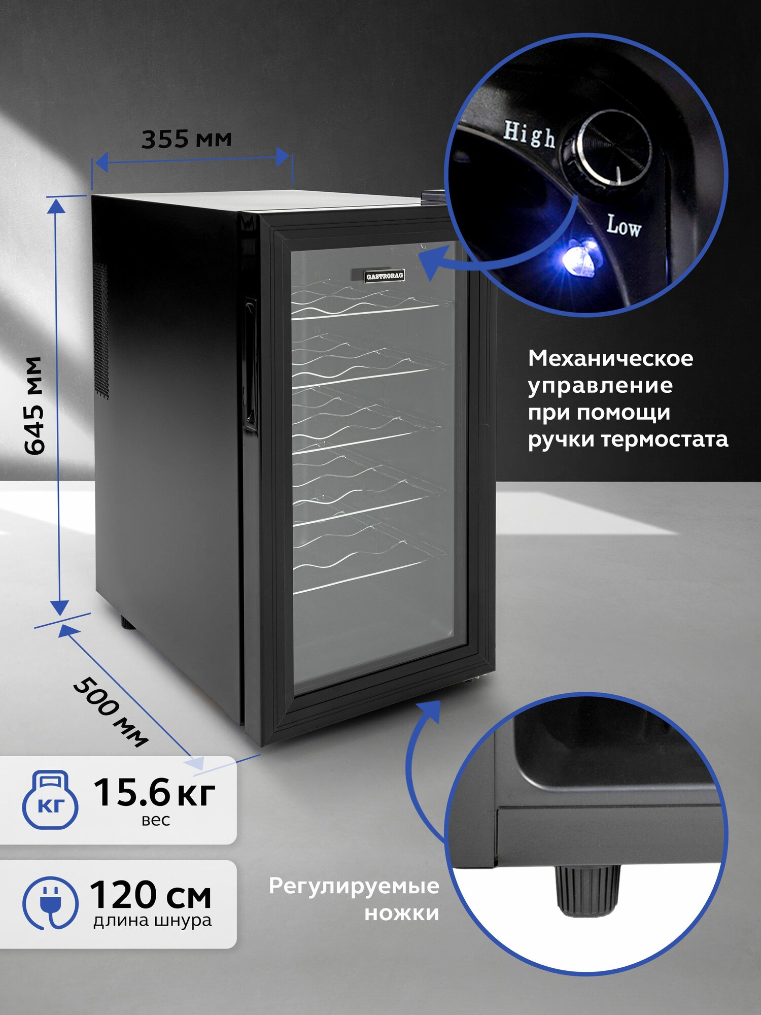 Винный холодильник GASTRORAG JC-48, термоэлектрический бескомпрессорный холодильный шкаф для вина, минибар на 18 бутылок, объем 48 л