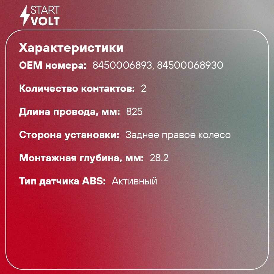СохранитьДатчик ABS для автомобилей Лада Vesta (15-) заднего правого колеса VS-ABS 0182 StartVolt интересное: