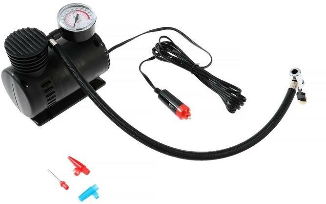 Купить Компрессор автомобильный 15 л/мин, провод 2.6 м, шланг 45 см, 3 переходника