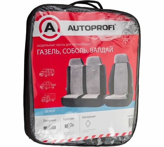 Модельные Чехлы На Газель, Соболь, Валдай, Водит.+Пассажир. Сиденье Велюр, Чёрн./Серый AUTOPROFI арт. GAZ-002 BK/GY
