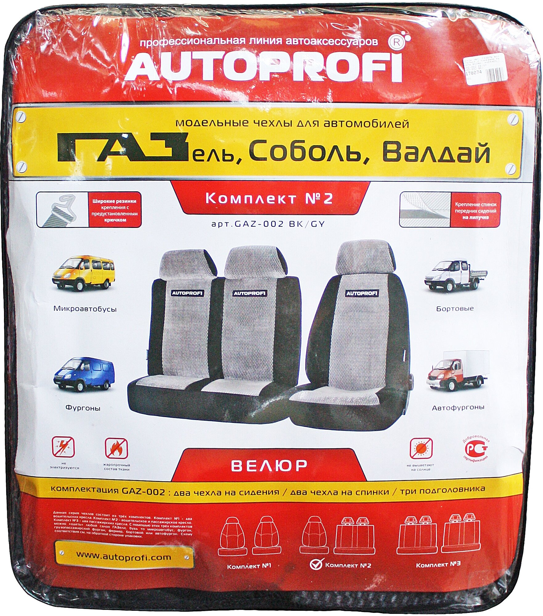 Gaz-002 Bk/Gy_чехлы Для Сиденья! Водит.+Пассажир., Велюр, Чёрн./Серый Газель, Соболь, Валдай AUTOPROFI арт. GAZ-002 BK/GY