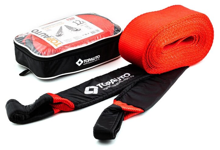 Трос буксировочный 12т 9м ленточный динамический (петля-петля) в сумке ТОП авто, TOP AUTO ДС129С (1 шт.)