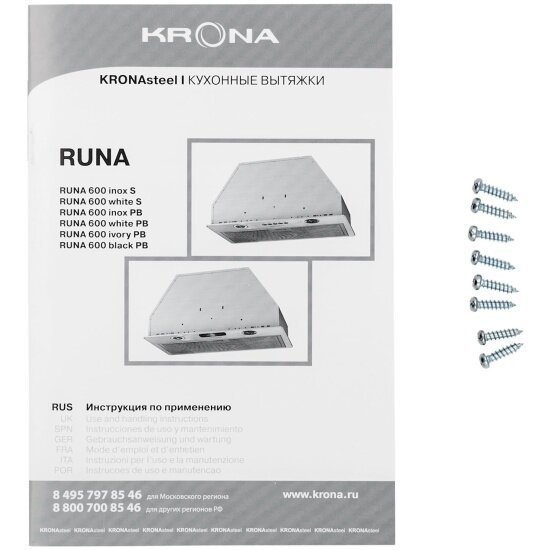 Встраиваемая вытяжка Krona Runa 600 PB нержавеющая сталь (00026694)