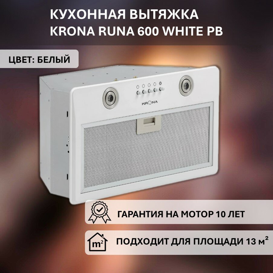 Вытяжка встраиваемая Krona Runa 600 PB белый управление: кнопочное (1 мотор)