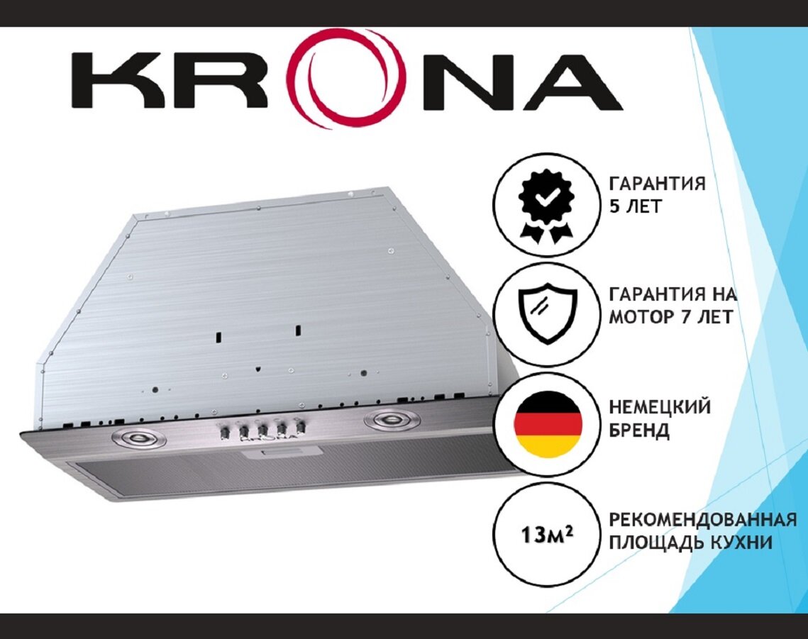 Встраиваемая вытяжка Krona Runa 600 Inox PB (Нержавеющая сталь)