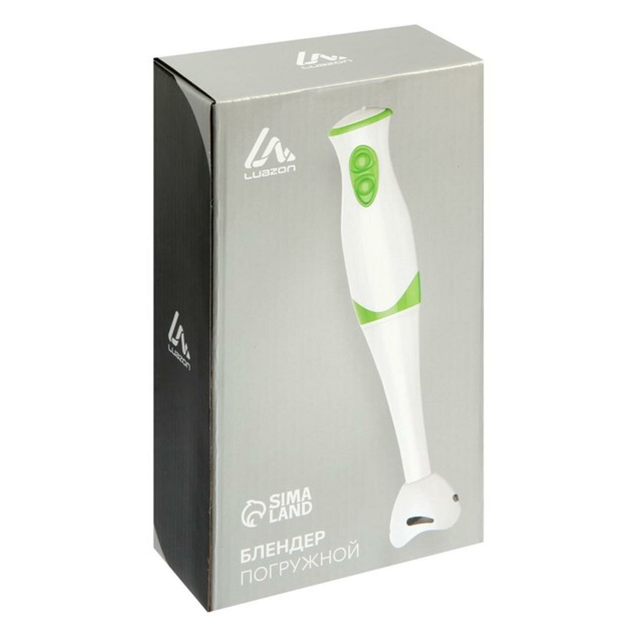 Купить Блендер LuazON LBR-25, погружной, 300 Вт, 2 скорости, бело-зеленый Luazon Home 4358120 .