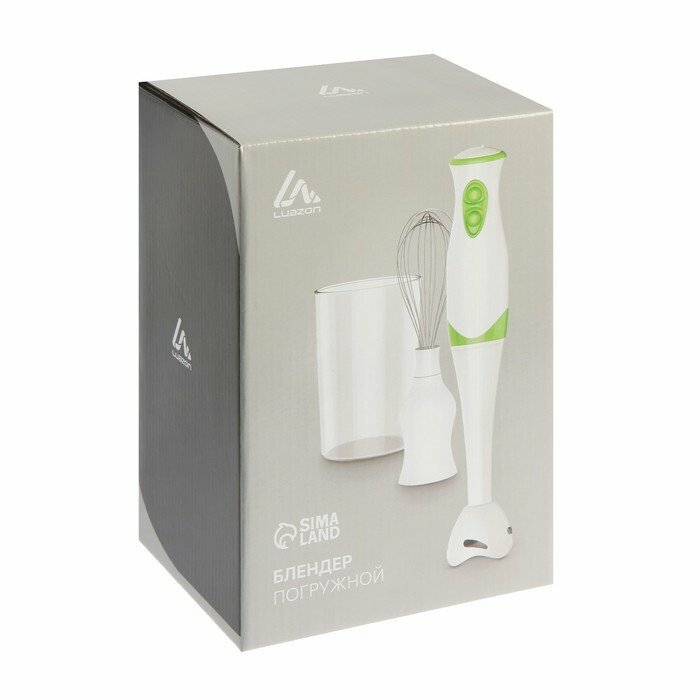 Купить Блендер Luazon LBR-26, погружной, 300 Вт, 0.6 л, 2 скорости, бело-зеленый