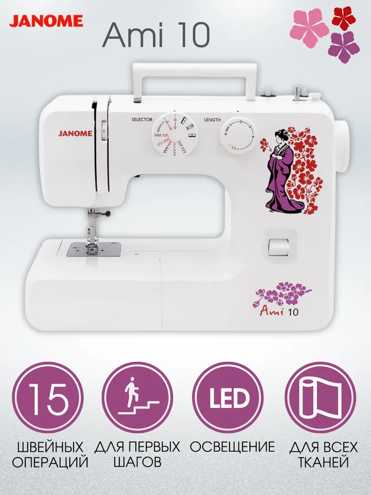 Ниже Вы можете прочитать отзывы на Швейная машина Janome Ami 10, ознакомится с подробными характеристиками, посмотреть интересные обзоры и фотографии на Швейная машина Janome Ami 10.