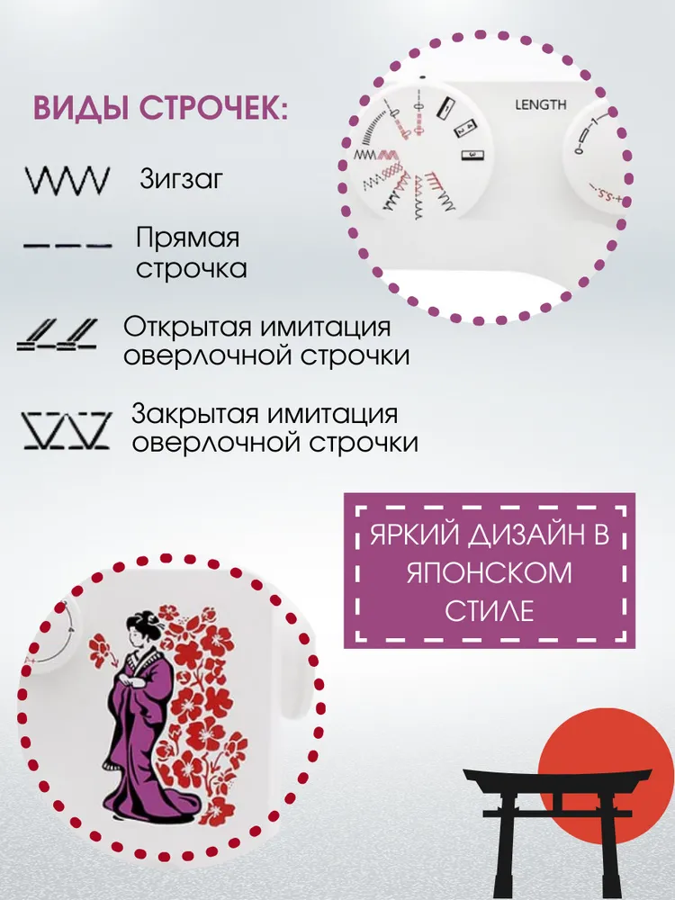 | Плюсы: | Япония. Работает тихо, шьёт хорошо. |